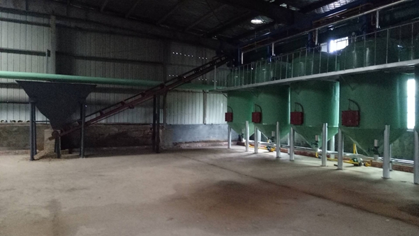 造粒后的含油白土由輸送機輸送至浸出罐上部的進料絞龍再由絞龍分料給浸出罐,當一個浸出罐達到一定料位時關閉這個進料閥打開另一個浸出罐進料閥,以此類推。第一個浸出罐料位達到關閉進料閥后,將預熱的新鮮溶劑打進這個浸出罐,進夠一定量的溶劑后打開混合油循環泵,經過一定時間循環浸泡后白土內的油脂被萃取出來,萃取得到的混合油由混合油泵打入混合油罐。