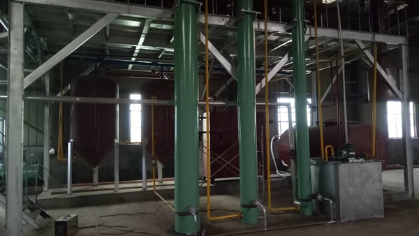 3、白土蒸烘: 浸泡萃取過的廢白土在浸出罐內(nèi)由直接蒸汽經(jīng)過下壓、上蒸后脫掉殘油及水分,達(dá)到干燥程度后由人工打開卸料門將廢白土放入出料絞龍,經(jīng)出料絞龍輸送至車間外廢料場。